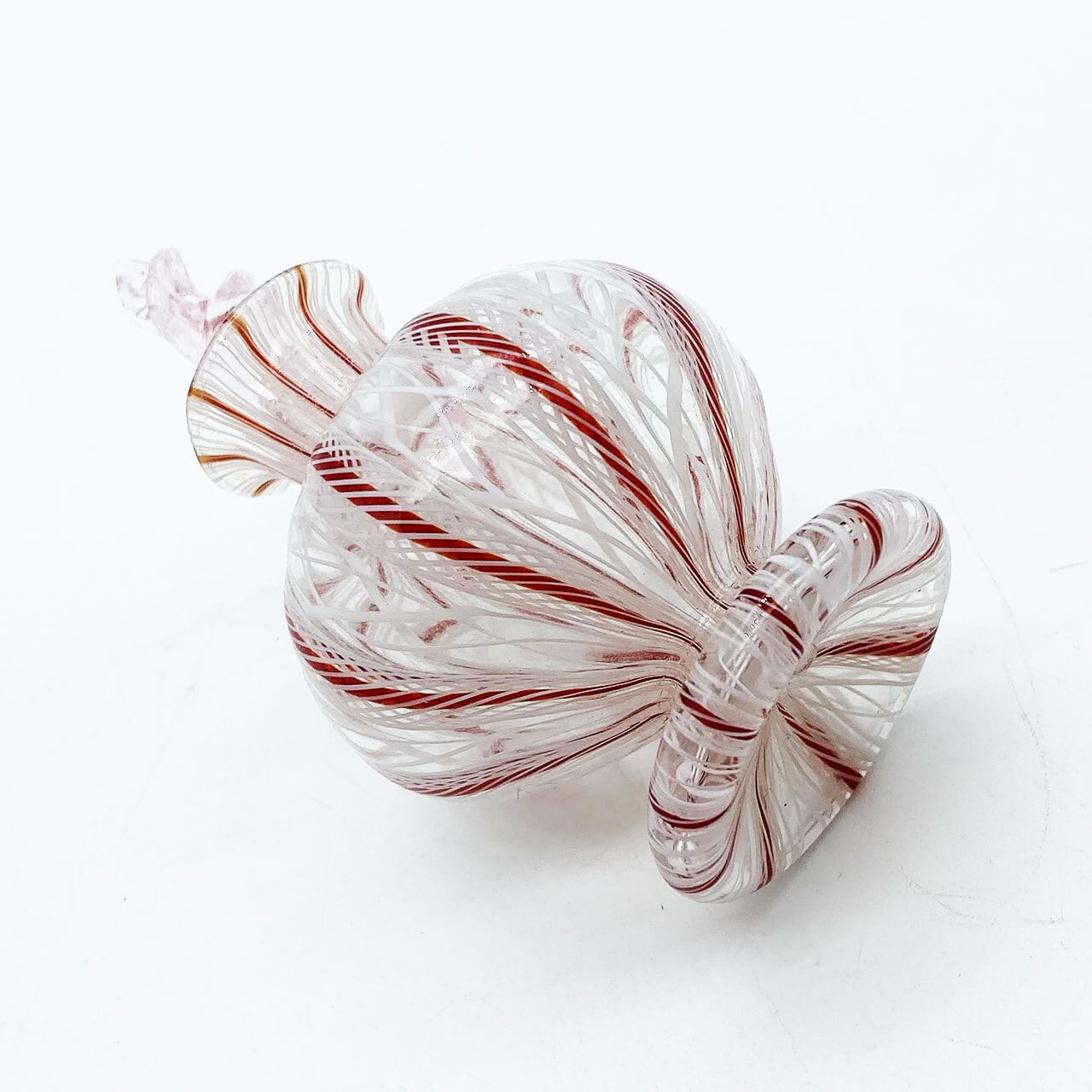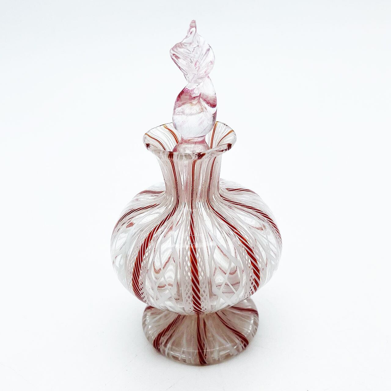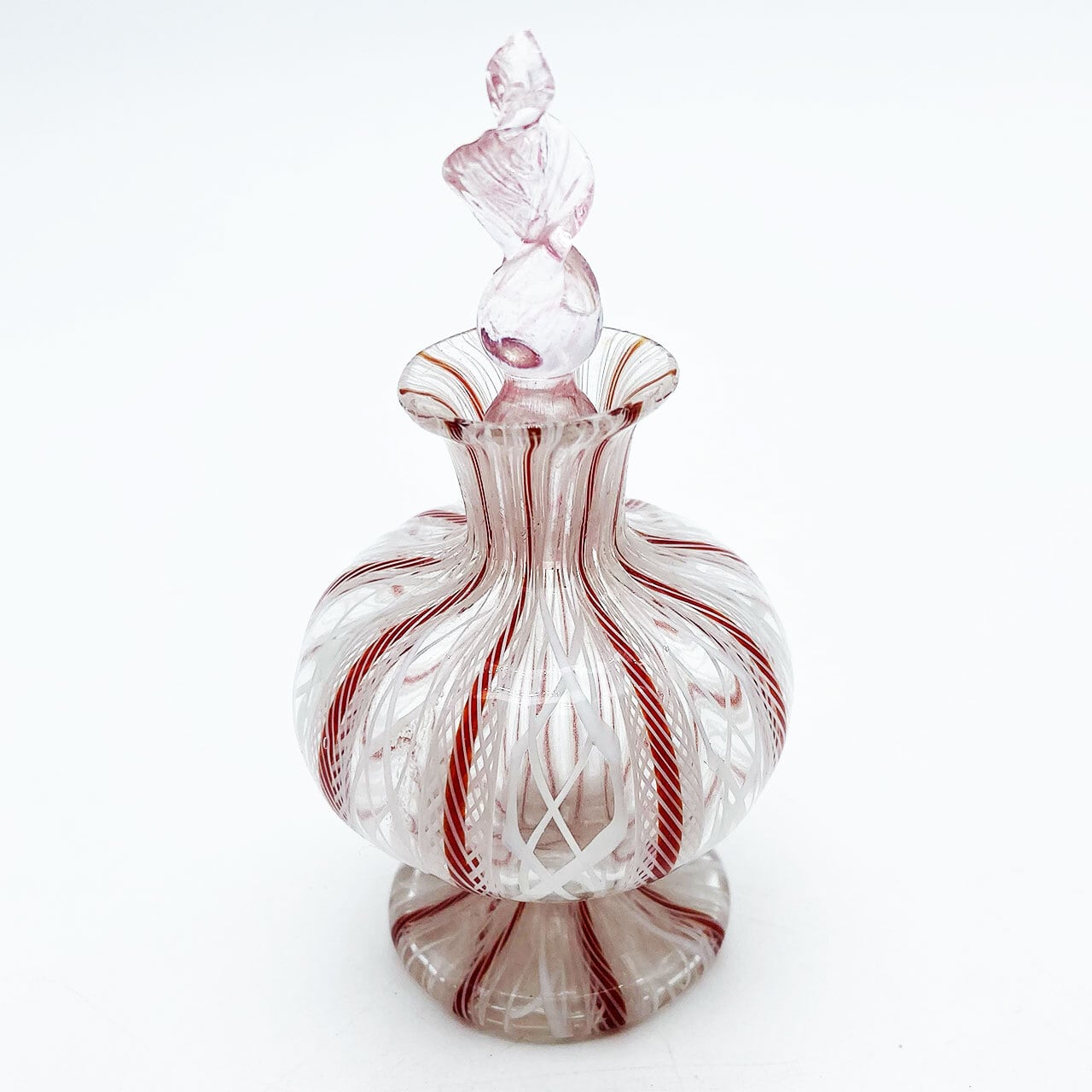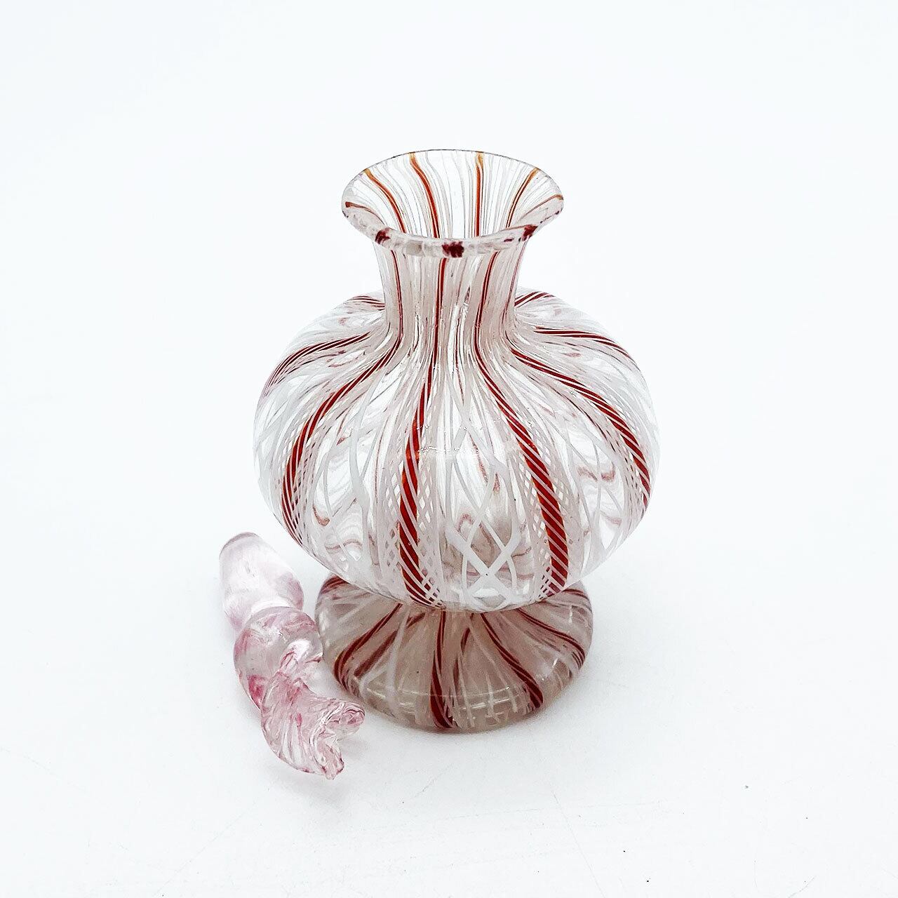 ヴェネチアガラス ムラノ イタリア 香水瓶 フィリグラーナ レッティチェロ ロゼ ホワイト レース模様 ベネチアン グラス 10.0cm