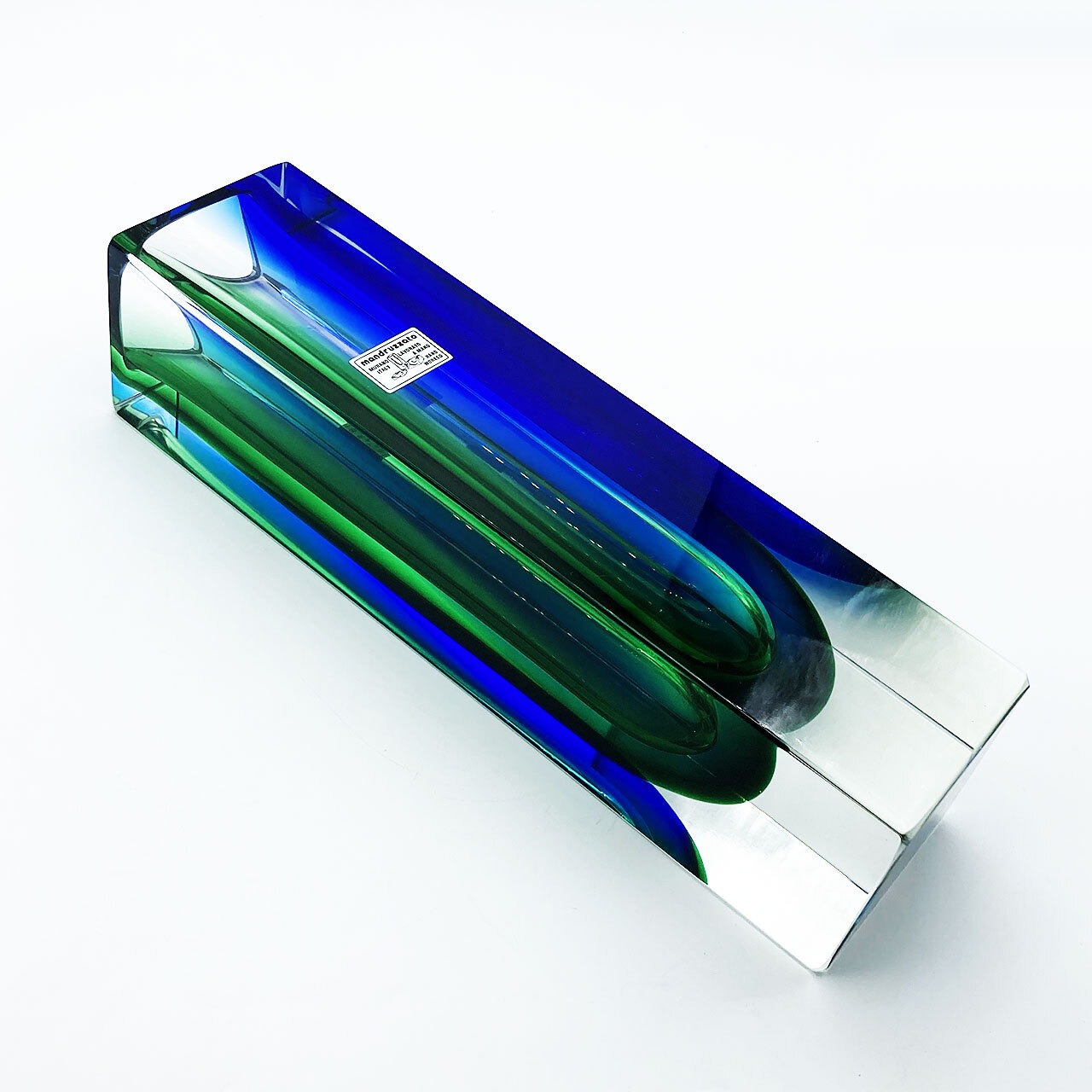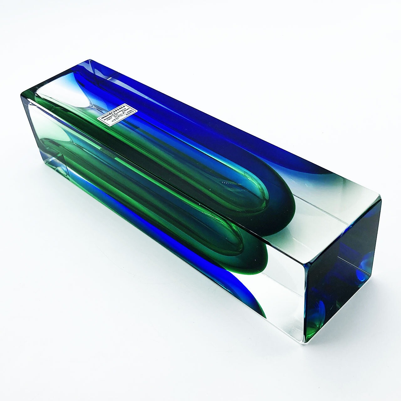 この美しいブルーとグリーンのグラデーションは、ヴェネチア、ムラノ島の伝統技法、SOMMERSO(ソンメルソ)を用いて制作されています。