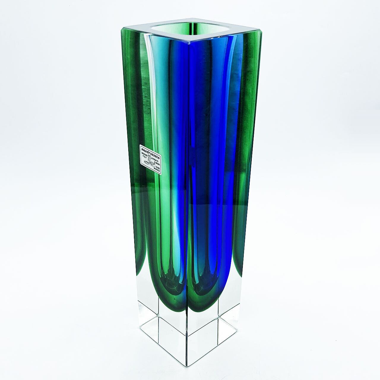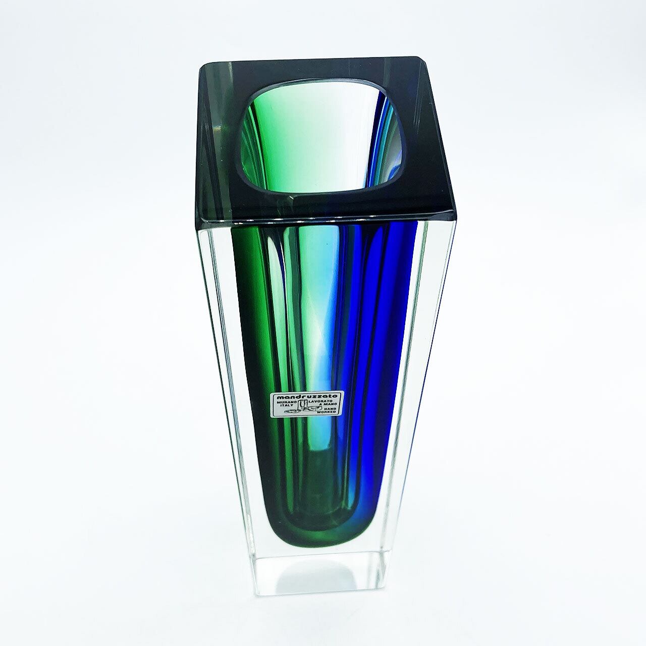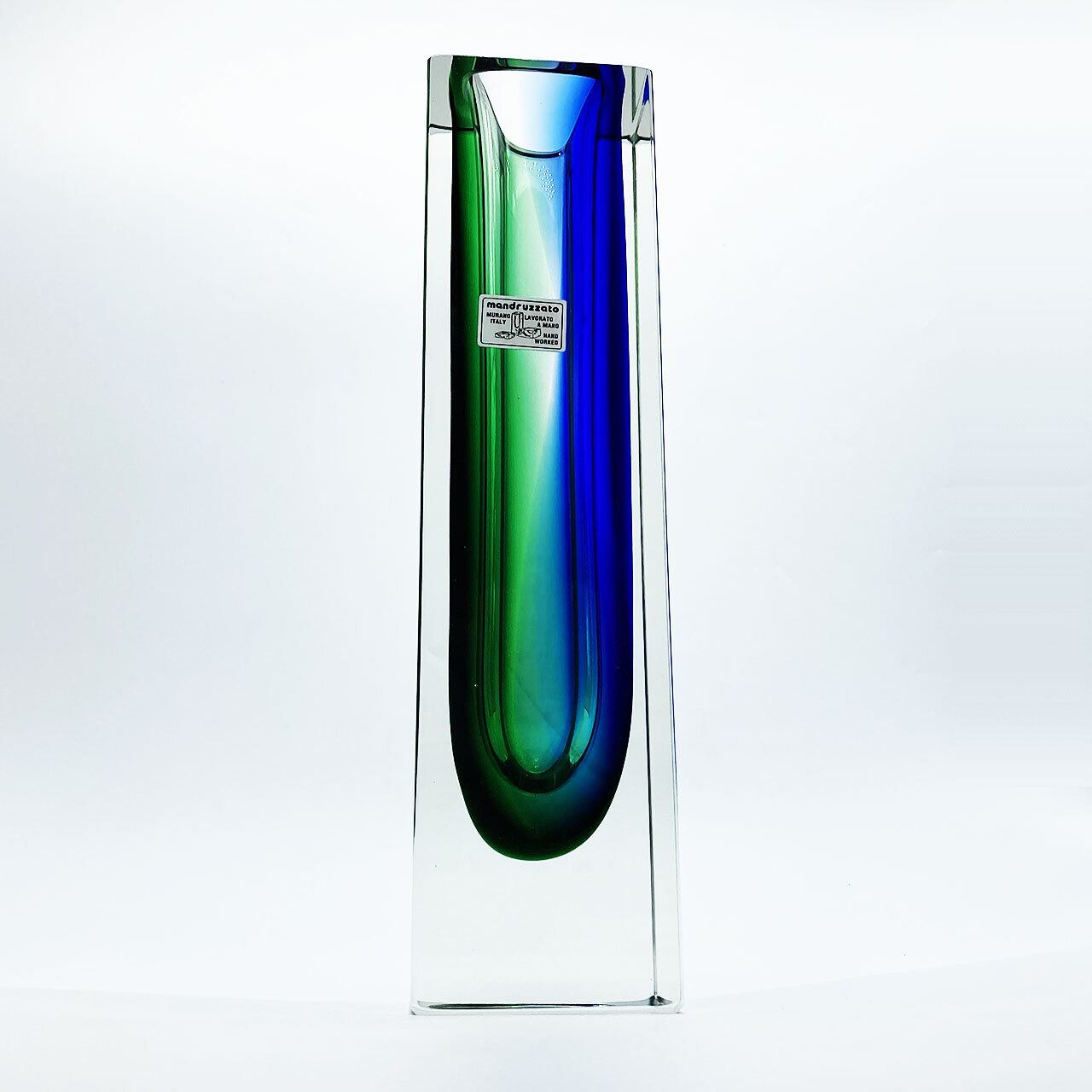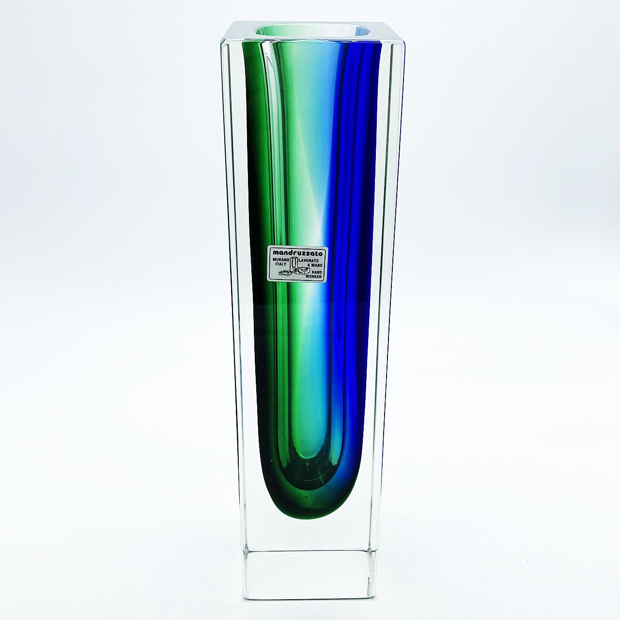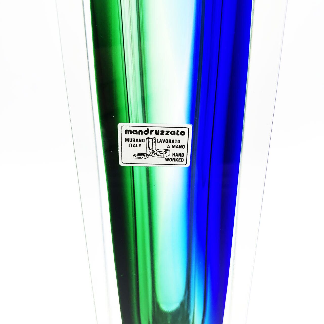 ヴェネチアガラス ムラノ マンドラザート Mandruzzato 花瓶 一輪挿し グリーン&ブルー ベネチアン グラス 25.0cm