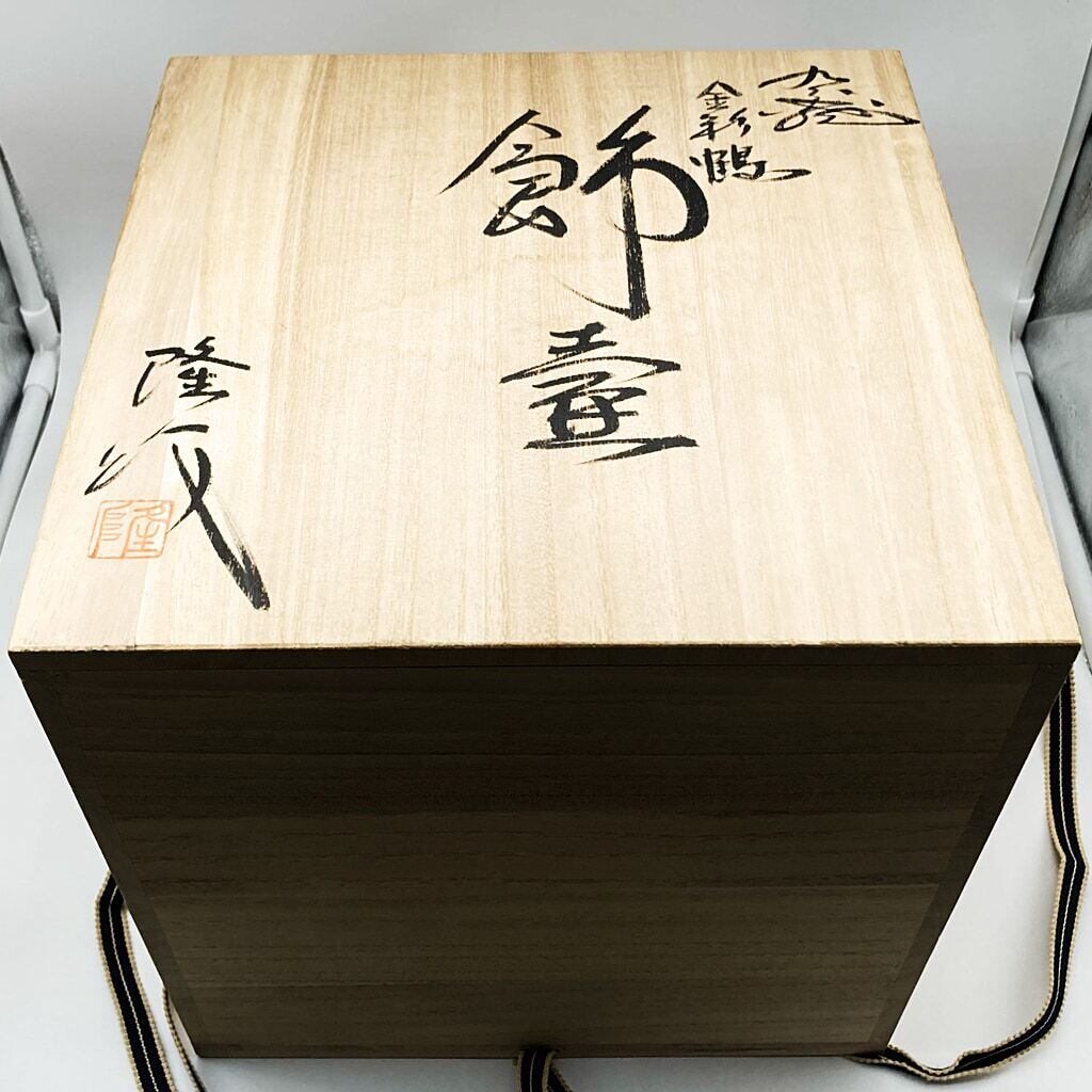九谷焼 竹隆窯 北村隆 色絵金彩鶴 花生 壺 作家 20.2cm