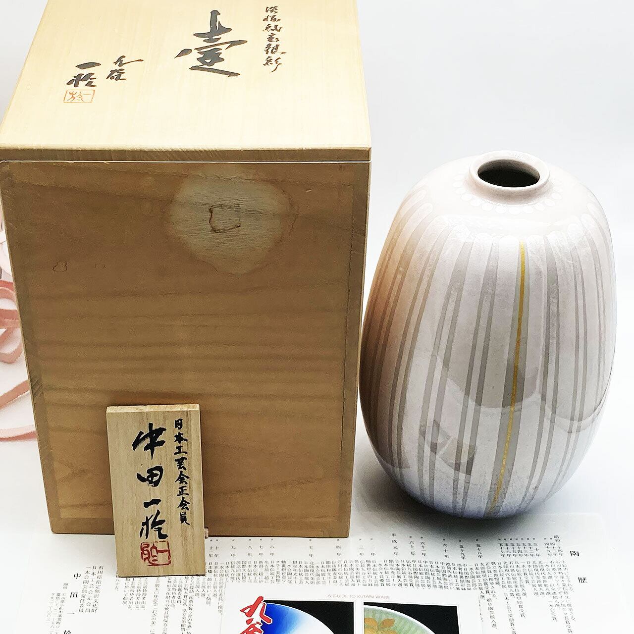 九谷焼の石川県指定無形文化財の人気作家、中田一於による気品溢れる芸樹的価値の高い貴重な美しい花瓶作品。