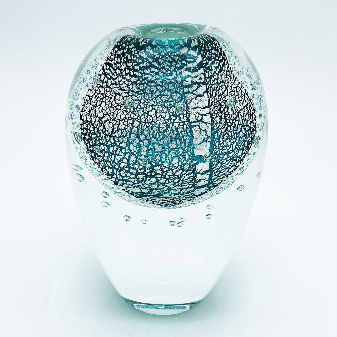 現代の名工 黒木国昭 宙吹きガラス 銀彩気泡 花瓶 クリア マリンブルー 一輪挿し 芸術品 作家物 11.6cm